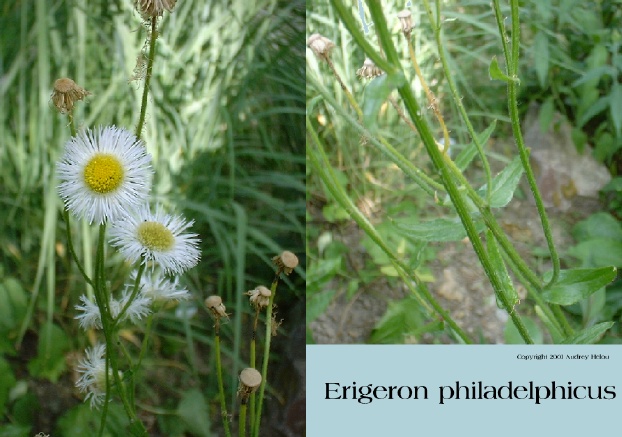 Burning Fleabane produces an oily smoke that repels insects. Erigeron philadelphicus spreads by runners.
